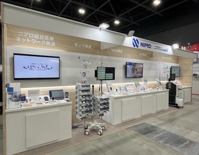 展示エリアでは、NIPROブースにて多用途血液処理用装置や注射筒輸液ポンプ、テレメトリー式心電送信機の展示を行い、多くの方々にご来訪いただきました。