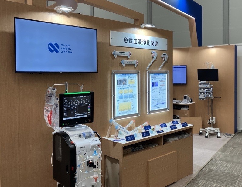 展示エリアではNIPROのブースにて多用途血液処理用装置や注射筒輸液ポンプ、テレメトリー式心電送信機の展示も行われ、多くの方々の注目を浴びておりました。弊社からも説明要員として参加致しました。